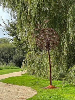 Our beautiful Dandelion was inspired by the first bloom of flowers this spring, wanting to take inspiration from the floating seedlings of the dandelions in our garden. This scultpure was created using mild steel and stands approx. 3.4 metres high. We are also proud to say this pieces is also apart of the Sculpture by the Lakes Arbor Exhibitions this October. please go along and admire it in person.